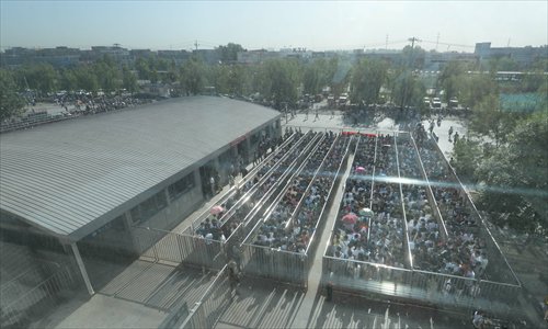 Commuters line up outside a subway station in Beijing during rush hour on Monday morning after the Beijing government started full-body searches in more stations as part of an upgraded anti-terrorism campaign. Photo: IC