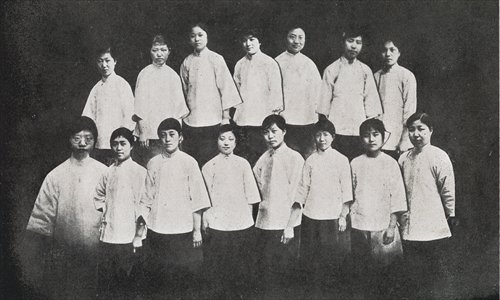 Students wearing gowns and skirts posed for a 1921 graduation photograph. Photo: Courtesy of the Shanghai No.3 Girls' High School