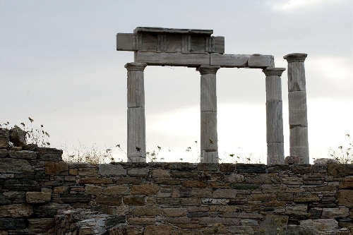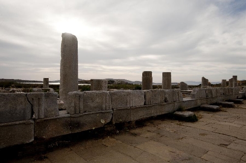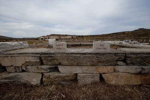 Photo taken on May 28, 2014 shows the remains of the Apollo Temple on the island of Delos, Greece. According to Greek mythology, Apollo was born on this tiny island in the Cyclades archipelago. Apollo's sanctuary attracted pilgrims from all over Greece and Delos was a prosperous trading port. The island bears traces of the succeeding civilizations in the Aegean world, from the 3rd millennium B.C. to the palaeochristian era. The archaeological site is exceptionally extensive and rich and conveys the image of a great cosmopolitan Mediterranean port. (Xinhua/Liu Yongqiu)
