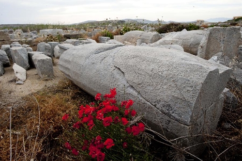 Photo taken on May 28, 2014 shows a scenery of the island of Delos, Greece. According to Greek mythology, Apollo was born on this tiny island in the Cyclades archipelago. Apollo's sanctuary attracted pilgrims from all over Greece and Delos was a prosperous trading port. The island bears traces of the succeeding civilizations in the Aegean world, from the 3rd millennium B.C. to the palaeochristian era. The archaeological site is exceptionally extensive and rich and conveys the image of a great cosmopolitan Mediterranean port. (Xinhua/Liu Yongqiu)
