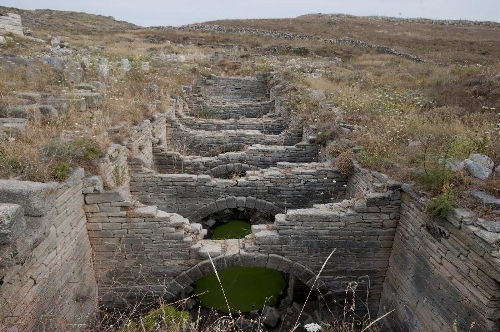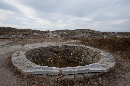 Photo taken on May 28, 2014 shows the remains of a water cellar on the island of Delos, Greece. According to Greek mythology, Apollo was born on this tiny island in the Cyclades archipelago. Apollo's sanctuary attracted pilgrims from all over Greece and Delos was a prosperous trading port. The island bears traces of the succeeding civilizations in the Aegean world, from the 3rd millennium B.C. to the palaeochristian era. The archaeological site is exceptionally extensive and rich and conveys the image of a great cosmopolitan Mediterranean port. (Xinhua/Liu Yongqiu)