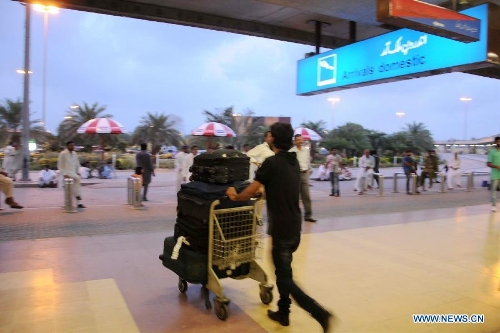 Pakistani passengers arrive at Jinnah International Airport after militants attack in southern Pakistani port city of Karachi on June 9, 2014. The Jinnah International Airport in Pakistan's southern port city of Karachi reopened to passengers on Monday afternoon following Sunday night's terrorist attack that killed 23 people, local media and officials said. (Xinhua/Masroor)
