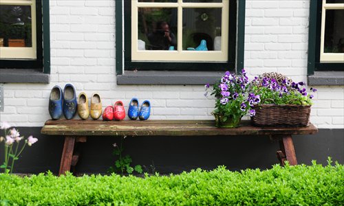 Dutch wooden shoes are seen outside the window of a thatched house in Giethoorn. Photo: Wu Gang/GT
