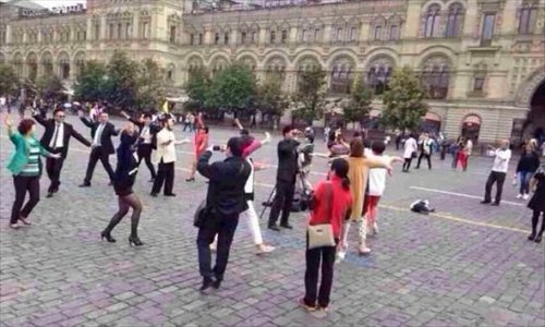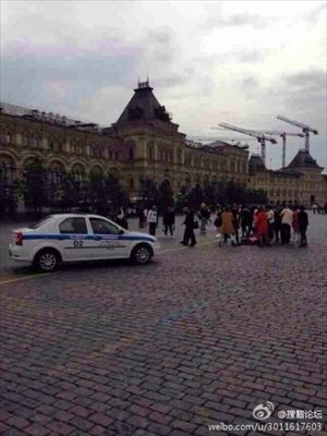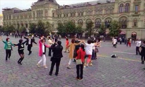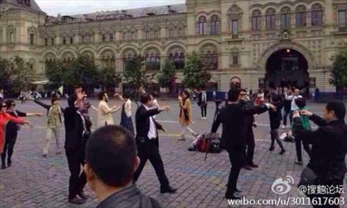 Moscow police disperse a group of Chinese women and men dancing at Red Square, according to a Sina Weibo user, registered as a forum for Chinese expats in Russia, who uploaded the photos on June 15. Popular among Chinese middle-aged women, group square dancing has been stirring up much controversy in recent months for blasting loud music at late hours in public places. Participants explain square dancing keeps them fit and active. Photo: weibo.com