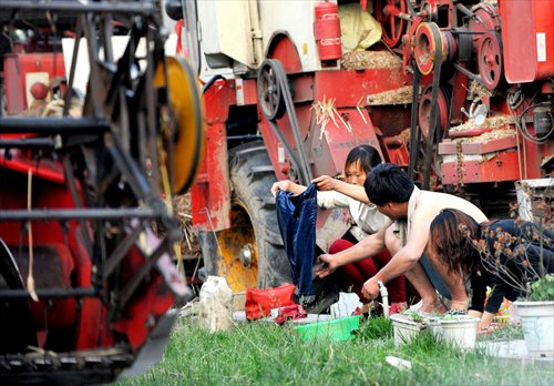 Qu Changcheng, 39, from Fengyang, Anhui, has worked as a harvester for seven years. This year, he and around 2,000 others from his hometown started their journey in late April, heading to Sichuan then turning northward - by the time he will arrive home in June, his own fields will be ready for harvest.