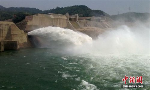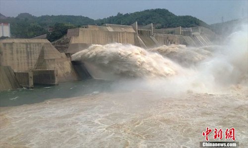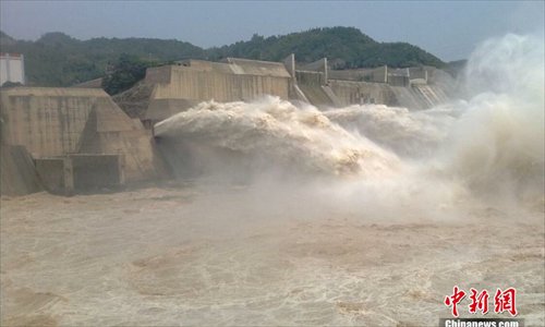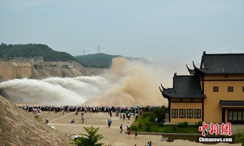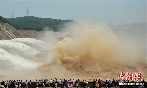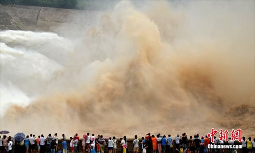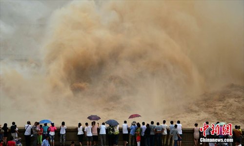 The sediment regulation begins at Xiaolangdi of Yellow River on June 30, 2014. The breathtaking landscape of rolling waves and towering waterfalls attracted visitors across the country. Photo:CNS