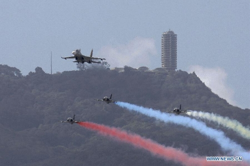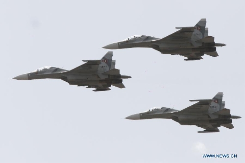 Fighter aircrafts take part in a military parade to celebrate the 203rd anniversary of Venezuela's independece in Caracas, capital of Venezuela, on July 5, 2014.(Xinhua/Fausto Torrealba/AVN)
