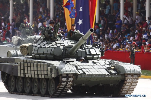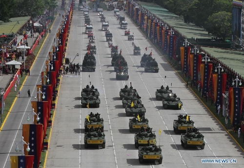 Armored vehicles take part in a military parade to celebrate the 203rd anniversary of Venezuela's independece in Caracas, capital of Venezuela, on July 5, 2014.(Xinhua/Presidential Press/AVN)