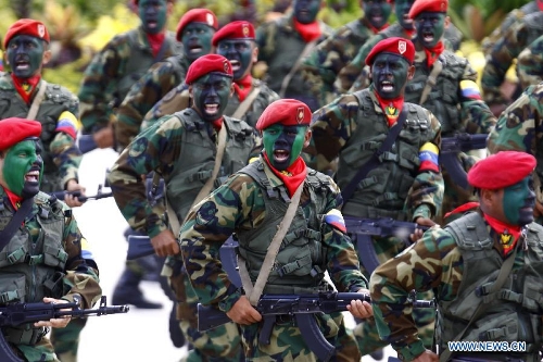 Soldiers take part in a military parade to celebrate the 203rd anniversary of Venezuela's independece in Caracas, capital of Venezuela, on July 5, 2014. (Xinhua/Fausto Torrealba/AVN)