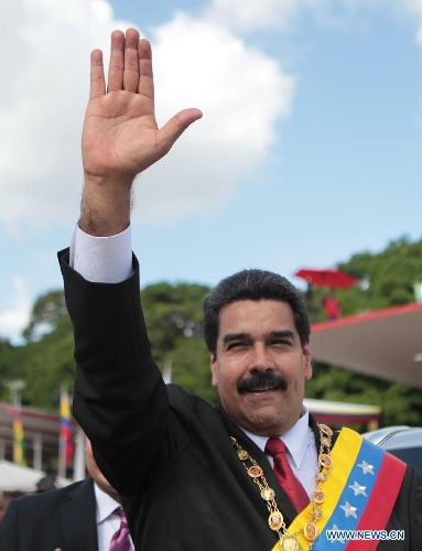Venezuelan President Nicolas Maduro attends a military parade to celebrate the 203rd anniversary of Venezuela's independece in Caracas, capital of Venezuela, on July 5, 2014. (Xinhua/Presidential Press/AVN)