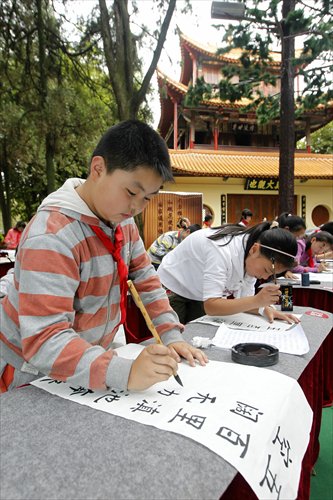 A calligraphy show is held in Yunnan Province to promote the simplified Chinese and Putonghua. Photo: IC