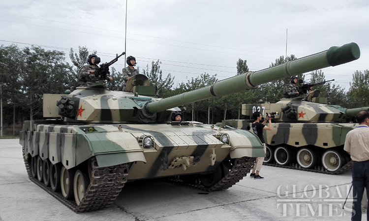 A Main Battle Tank 96A is displayed at the AAFE in Beijing on July 22, 2014. The tank can carry three crew members and drive at 59 kilometers an hour. The 96A performs well at night and is capable of hitting moving targets while in motion. Photo: Pang Qi /GT