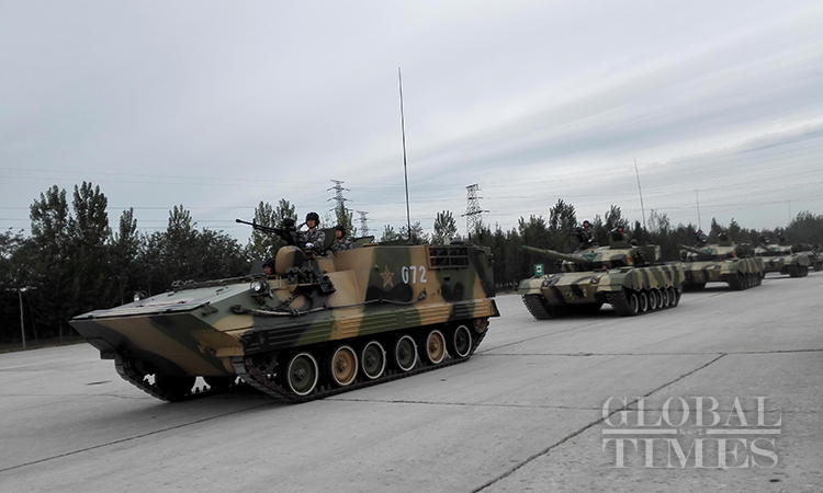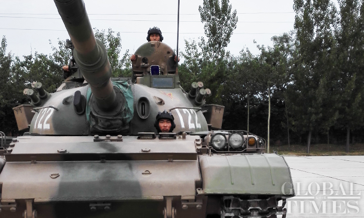 Junior cadets at AAFE conduct an armored vehicle demonstration in the academy on July 22, 2014. AFFE cadets must earn two certificates, including a commander certificate, to pass the course, said Li Shengli, head of training at AAFE. Photo: Pang Qi /GT