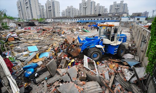 In front of newly completed buildings lie ruins of urban villages in Shanghai. Photo: CFP
