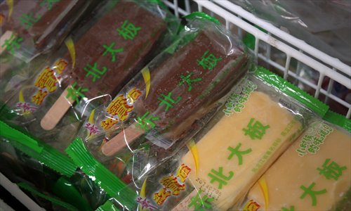 Dong Bei Da Ban popsicles sit in a freezer waiting to be eaten. Photo: IC