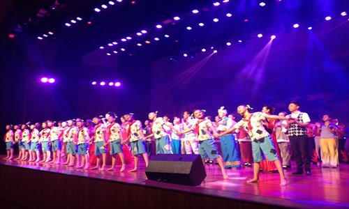 Students perform on stage for villagers in Yan'an, Shaanxi Province. Photo: Xie Wenting/GT