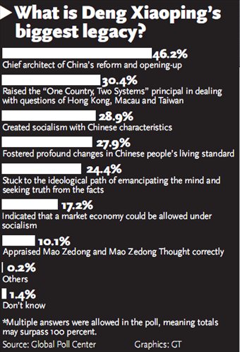A Global Times poll on the late leader Deng Xiaoping has discovered that the former leader is most honored by Chinese people as the chief architect of China's reform and opening-up. Great respect toward Deng is prevailing, it can be revealed, as the 110th anniversary of the birth of Deng approaches on Friday.