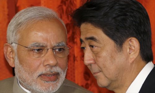 The increasing intimacy between Tokyo and New Delhi will bring at most psychological comfort to the two countries. What is involved in China-India relations denotes much more than the display of the blossoming personal friendship between Modi and Abe. After all, Japan is located far from India. Abe's harangue on the Indo-Pacific concept makes Indians comfortable. It is South Asia where New Delhi has to make its presence felt. However, China is a neighbor it can't move away from. Sino-Indian ties can in no way be counterbalanced by the Japan-India friendship.