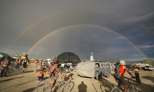 People from around the world attend the annual Burning Man festival in 2007 in Nevada, the US. Photo: CFP