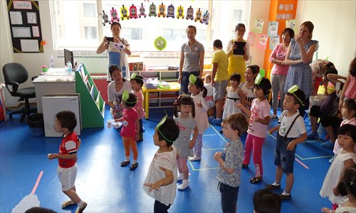 At the academy, teachers use English for communication and for teaching. "It's like when the children come into the kindergarten, they are in the United States," Sigrist told the Global Times.