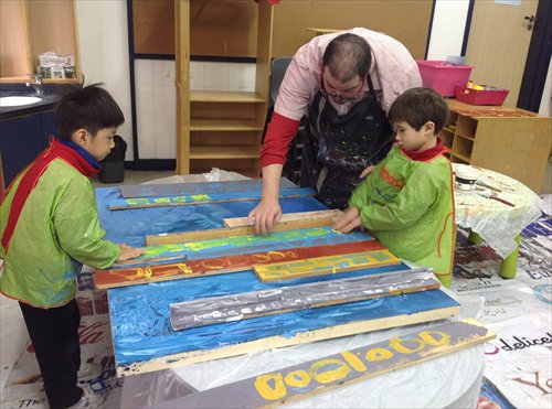 One particularly unique aspect of the arts education at YCIS is its Artist-in-Residence (AIR) program. In addition to art class teachers, YCIS also employs two professional artists to work at the school all year-round on it's campuses in Puxi and Pudong, with the aim of guiding and inspiring students by creating small and large-scale art projects that enhance classroom learning, and that beautify and decorate the campus. The artists are also encouraged to develop their own personal portfolios during the school year.