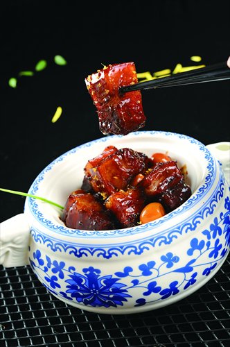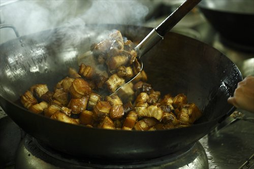 The process for making osmanthus-flavored pork braised in brown sauce Photos: Courtesy of the restaurants