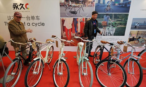 Visitors check out Forever bicycles at an exhibition. Photo: CFP
