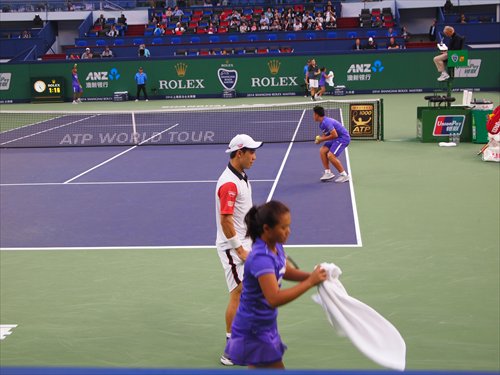 One thriller match between Roger Federer and Leonardo Mayer lasted until nearly 1 am on the center court, where Gu Wu was working. "Of course it's a physically demanding job. To qualify to be a ball boy you have to pass fitness tests. Usually we spend 4 hours a day on court which is easy to handle." Gu first served as a ball boy at the Shanghai Masters in 2007.