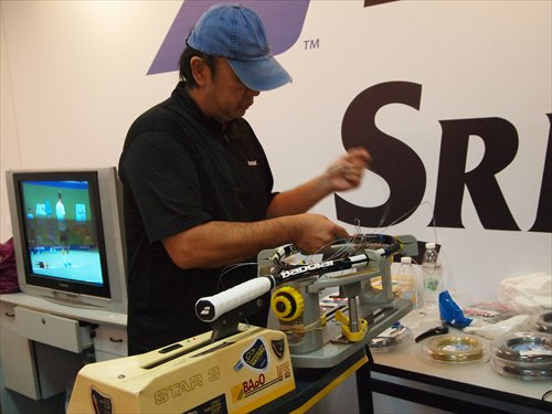 "Please give me 20 minutes to finish this racket." When the Global Times met John Li at the stringers' workroom, he had just been given an urgent restringing order and was busy on a stringing machine. "It happens all the time. Some players have a habit of delivering their rackets for stringing just before their games start. We have to race against time."