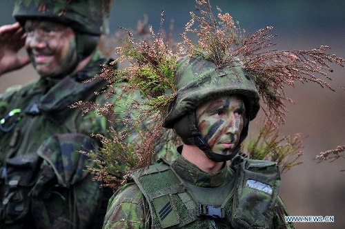 Lithuanian soldiers attend the "Hunter 2014" meida day training in Pabrade, Lithuania, on Oct. 16, 2014. Lithuania started a two-week anti-tank exercise "Hunter 2014" from Oct. 6, gathering more than 200 military personnels from the US and Lithuania.(Xinhua/Alfredas Pliadis)