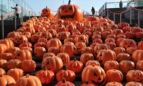 Five hundred Halloween pumpkins were placed in front of the MIXC shopping mall in Shenyang, Northeast China's Liaoning Province, on Tuesday, three days ahead of Halloween. Photo: CFP