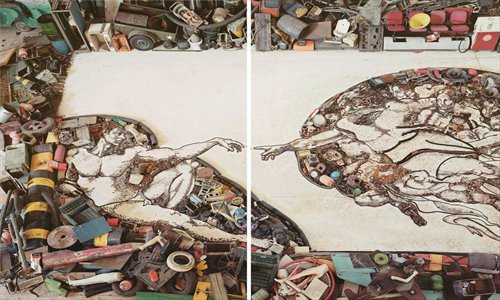 Vik Muniz's painting The Creation of Adam, After Michelangelo made of junk Photos: Courtesy of the venue