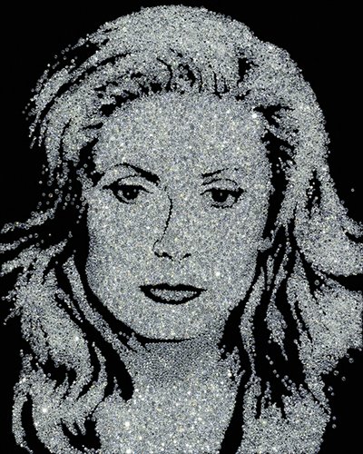 Apart from using quotidian objects, Muniz employs numerous small diamond particles to create his Picture of Diamonds series. It consists of portraits of Hollywood stars such as Marilyn Monroe and Elizabeth Taylor. His photographic documentation of the diamond arrangements helps eternalize the fleeting beauty of the legends.