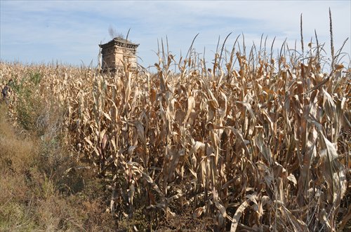 A pagoda standing in a cornfield in a village in Shanxi Province. Even though it is registered as a cultural relic, the pagoda needs urgent repairs, as it has started to lean and parts of it have been stolen. Photo: Zhang Yiqian/GT
