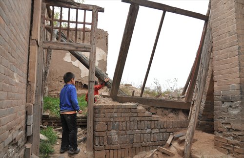 A child plays in a temple in Shanxi Province that has fallen apart. Photo: Zhang Yiqian/GT