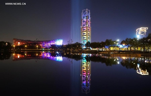Photo taken on Nov. 6, 2014 shows the night view around the Bird's Nest stadium in Beijing, China. The 2014 APEC Economic Leaders' Week is held in Beijing from Nov. 5 to 11. (Xinhua/Chen Jianli