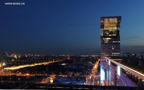 Photo taken on Nov. 6, 2014 shows the night view around the Pangu Plaza in Beijing, China. The 2014 APEC Economic Leaders' Week is held in Beijing from Nov. 5 to 11. (Xinhua/Gong Lei