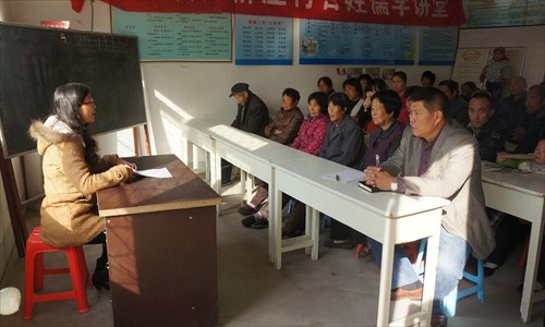 In Wanliuzhuang village in Qufu, Shandong Province, Wei Futing (left), who was appointed her village's Confucian lecturer, teaches residents about filial piety on a November morning. Photo: Zhang Yu/GT