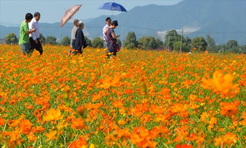 Some think of autumn as a bleak season, as many flowers wither as the weather turns cold. However, walking in the southwest Zhejiang's Dipu village people can still enjoy scenes of flourishing renewal, as thousands of flowers, like chrysanthemums and sunflowers, bloom here like a colorful piece of rich brocade.