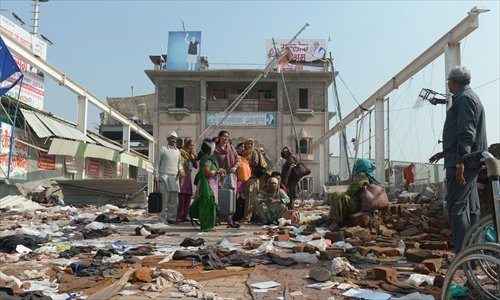 Indian followers leave the ashram of self-styled “godman” Rampal Maharaj in Hisar, some 175 kilometers north of New Delhi on Wednesday. Photo: CFP