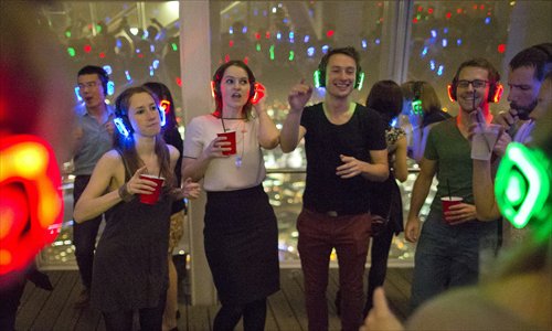 A group of partygoers attend a silent disco at The Shard in London. Photo: AFP