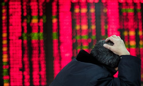 An investor looks at stock information at a trading hall of a securities firm in Shanghai on Wednesday. China's consumer inflation rate fell to a five-year low of 1.4 percent in November, the government said Wednesday, increasing concerns over the risk of deflation in the world's second-largest economy. Photo: AFP
