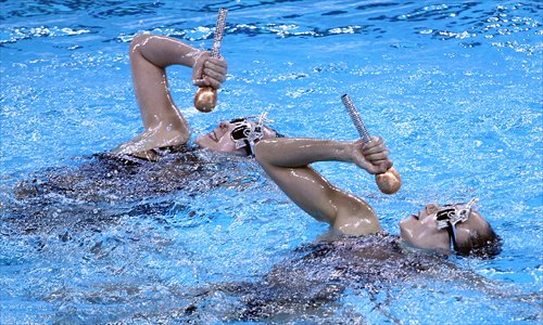 China, whose players are all members of the Beijing synchronized swimming team, bested Russia and Canada to win the thematic team competition with 95.1664 points on Saturday before claiming the synchronized highlight routine title with 95.8335 points.