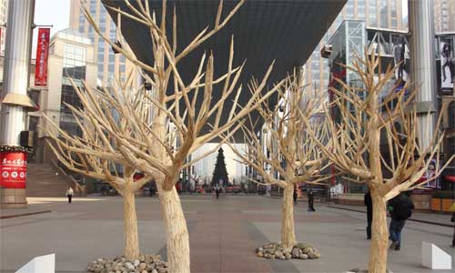 Trees made of used disposable chopsticks were displayed in Chaoyang district, Beijing, in December 2010. The NGO Greenpeace launched the event in a bid to raise people's environmental protection awareness. Photo: CFP