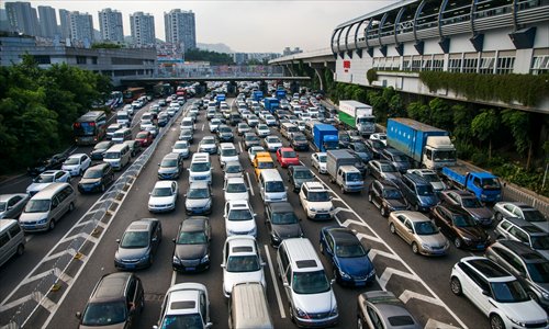 A scene of traffic congestion in Shenzhen on September 5, one day before the Mid-Autumn Festival Photo: CFP
