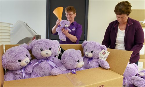 "We were experimenting with various shapes and colours. One day, five years ago or more, we showed a bear to a young Chinese girl in a shop," Ravens told AFP as his staff filled the plush toys with dried lavender before hand-stitching them shut.