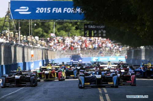Pilots compete during the Formula E Grand Prix on the street circuit in the city of Buenos Aires, Argentina, on Jan. 10, 2015. (Xinhua/Martin Zabala)