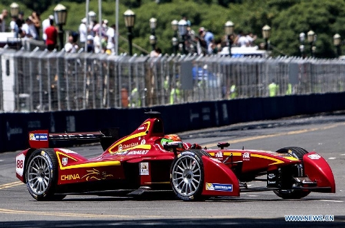Chinese pilot Ho-Pin Tung of China Racing Team competes during the Formula E Grand Prix on the street circuit in the city of Buenos Aires, Argentina, on Jan. 10, 2015. (Xinhua/Martin Zabala)