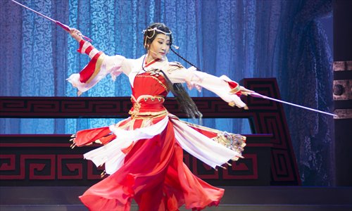 Li Jiayi performs on stage as Xiaoqi in the Cantonese Opera Fighting for the Great Tang Empire on Saturday at the Guangdong Cantonese Opera Art Center in Guangzhou, Guangdong Province. Photo: Courtesy of the Guangdong Cantonese Opera Institute