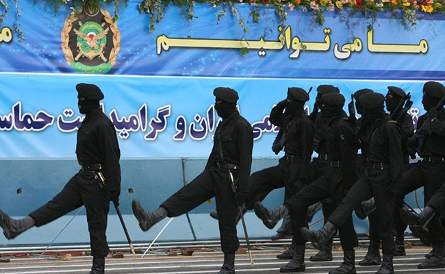Soldiers in black uniforms march during a military parade in Teheran, Iran on April 18, 2010. Photo: IC - hexun.com